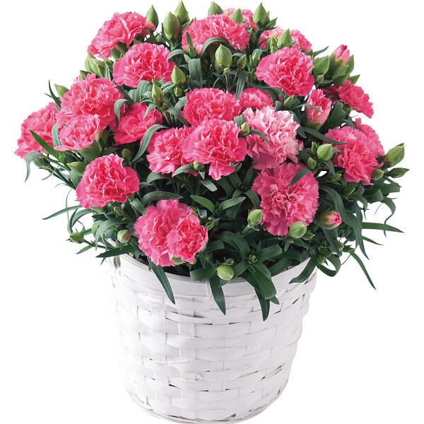 ●内容:カーネーション(5号鉢)バスケット(お手入れのしおり付)、徳島なると金時のどら焼き×3個【賞味期限:45日】【アレルゲン:卵・小麦】【化粧箱入】