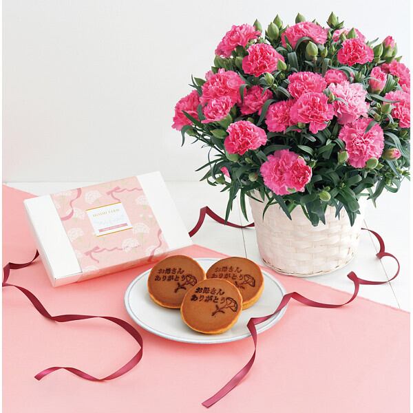 【母の日】ホシファームカーネーション鉢5号ホットハート&徳島なると金時どら焼